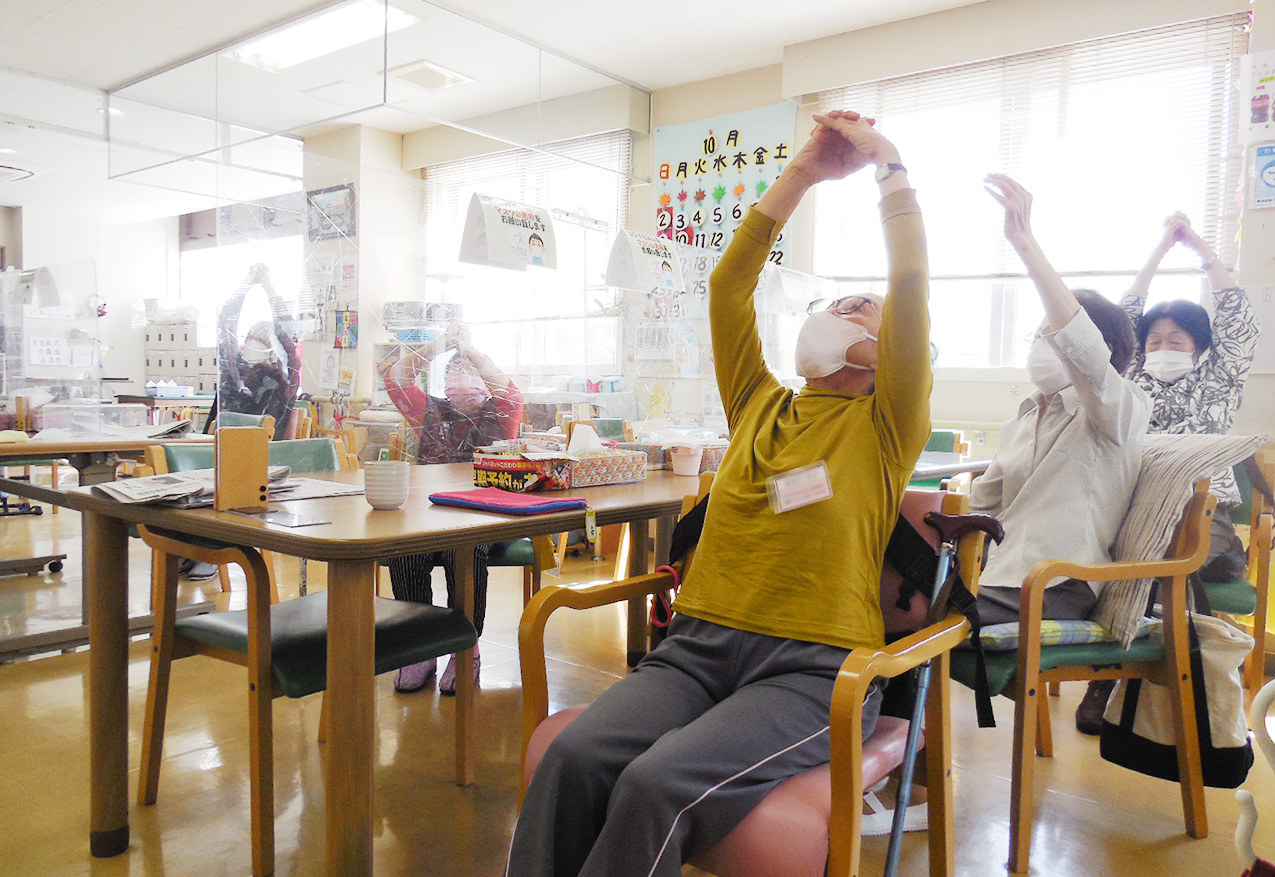 介護保険を利用して行き帰りの送迎の下、リハビリテーションや食事・入浴などのサービスを提供する施設です。利用者様の外出機会を作ることで、ご本人の生活にメリハリをつけるだけではなく、ご家族の介護負担の軽減にもつながります。デイサービスセンターとは異なり、リハビリの専門職によるリハビリテーションを実施できることが特色です。